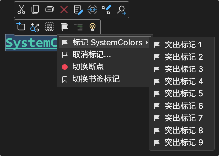 对代码中的变量进行标记。不能标记整行,智能标记某个词。可以在对C#语法提供高亮显示中进行配置。