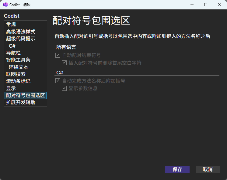 Codist可以在输入时,自动为选定内容配对标点符号。