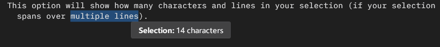 - 「选择信息」:勾选后显示所选区域的字符数和行数(如果跨行)。