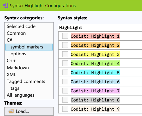 对于该功能,我最喜欢的是在「工具-配置Codist高级语法样式」提供的界面,简化了对高亮方案的调整。